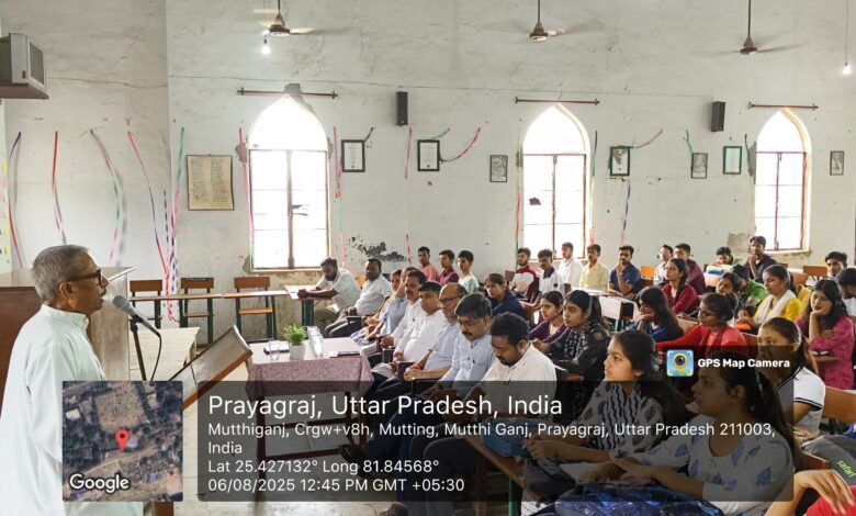 अर्थशास्त्री एवं समाजकर्मी डॉ. कृष्ण स्वरूप आनंदी ने यूइंग क्रिश्चियन महाविद्यालय परिसर में गांधी प्रार्थना समाज और तरुण शांति सेना के संयुक्त तत्वावधान में हो रहे संगोष्ठी में प्रकृति और मनुष्य के सहभाव और उत्पादन की विकेंद्रित प्रणाली को भारतीय परंपरा और जीवन दर्शन का मूल बताते हुए ‘जीवन के अर्थशास्त्र’ पर सारगर्भित व्याख्यान दिया।