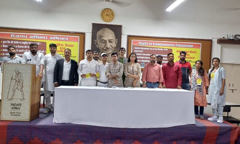 सुपर रिच पर टैक्स लगाने, शिक्षा, स्वास्थ्य और रोजगार की गारंटी , सरकारी विभागों में खाली पदों को तत्काल भरने और व्यक्ति के सम्मानजनक जीवन की गारंटी के सवाल पर नई दिल्ली के गांधी पीस फाऊंडेशन में रविवार को रोजगार अधिकार अभियान का सम्मेलन हुआ.
