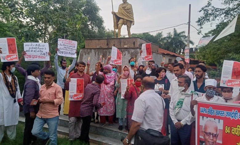फादर स्टेन स्वामी की मौत के बाद इलाहाबाद बालसन चौराहे पर आयोजित श्रद्धांजलि सभा
