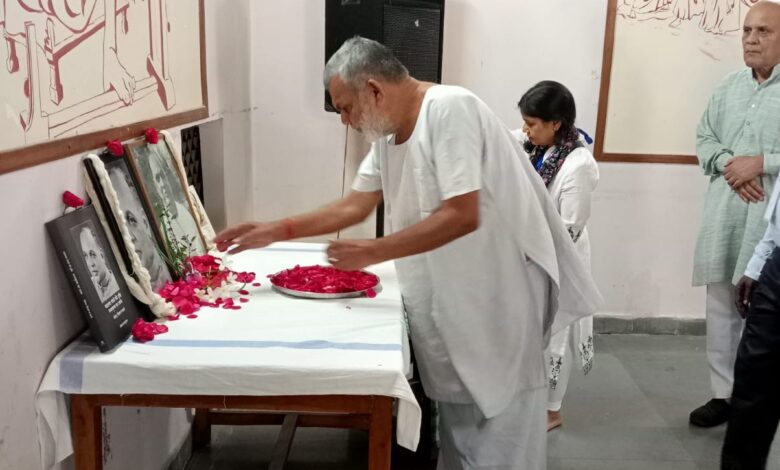 कार्यक्रम में पधारें श्री दिल्ली के वरिष्ठ पत्रकार प्रसून लतॉंत ,जमना लाल बजाज फाउंडेशन के श्री हरि भाई मोरे आदि ने पुष्पांजलि प्रदान की।